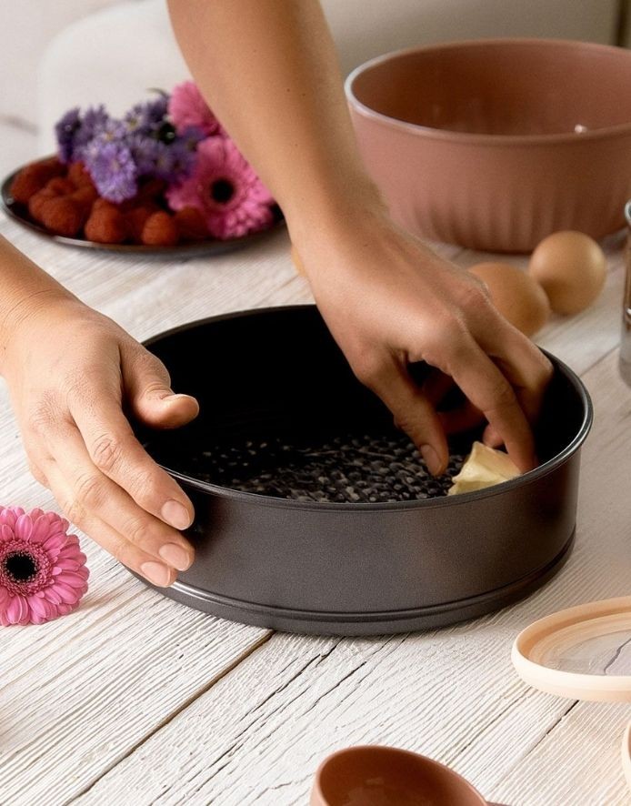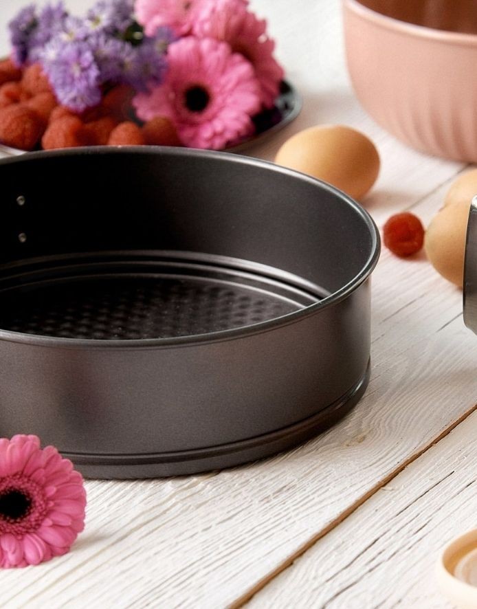 Classic, round baking dish with a removable bottom. Easy and convenient to remove baked goods.