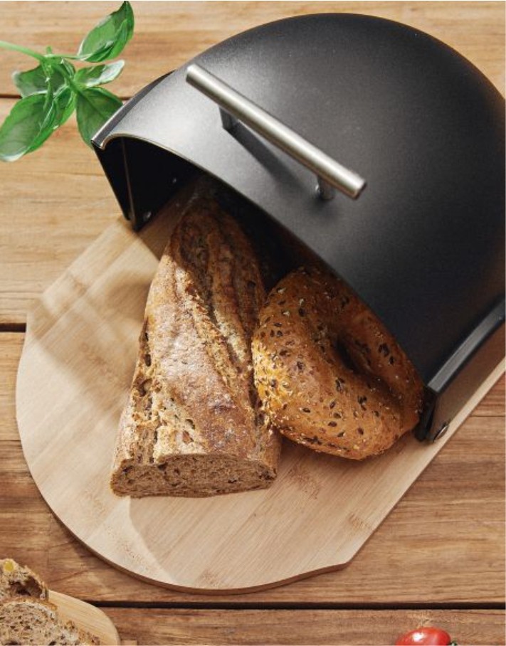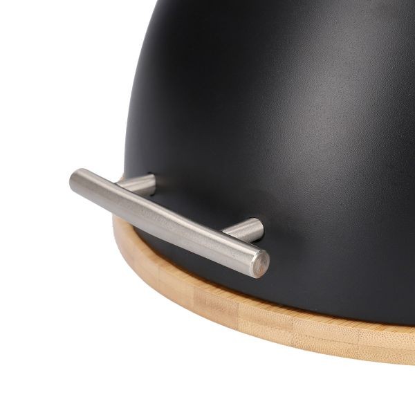 The product of the DARVIN line is characterized by an unconventional shape and attention to aesthetics. The base made of bamboo wood contrasts nicely with the semi-circular, movable lid. There is a convenient handle on the front of the lid that makes opening the bag easier and complements the design.