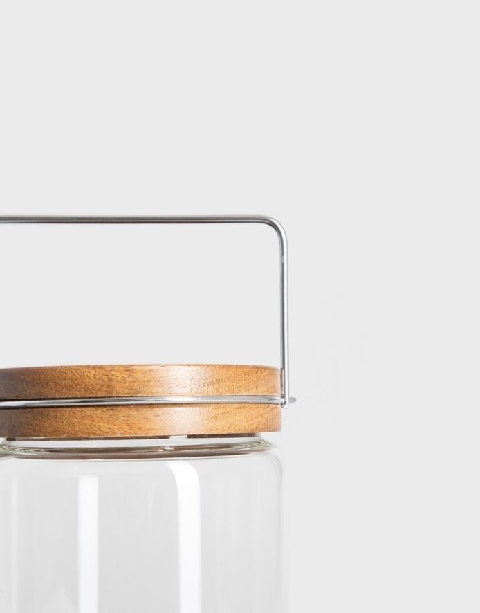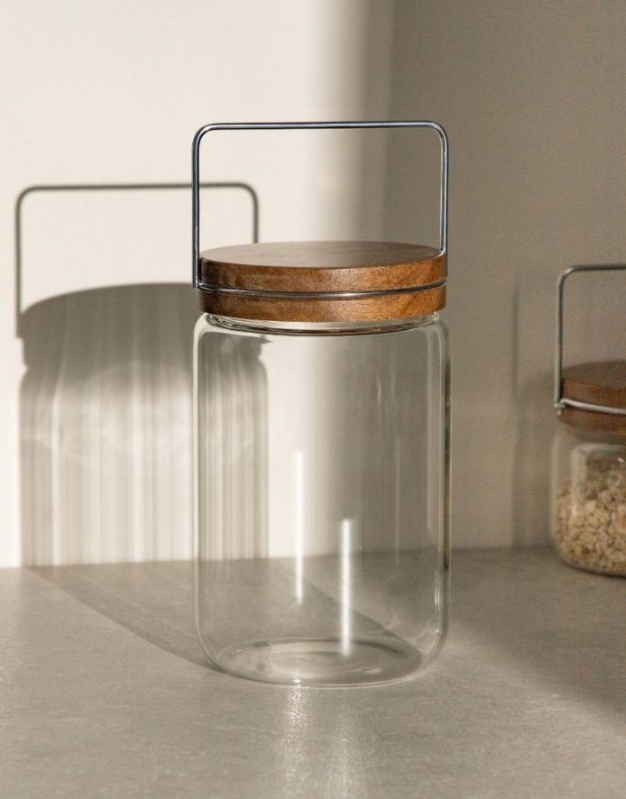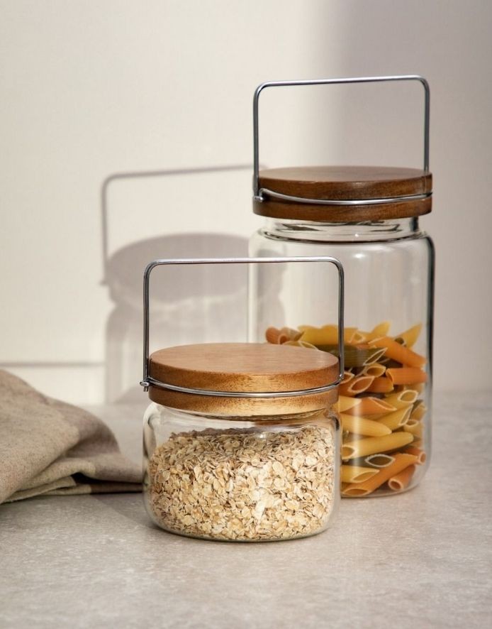 A clear, sturdy glass container is very convenient to use in the kitchen, and will also add character to your interior.