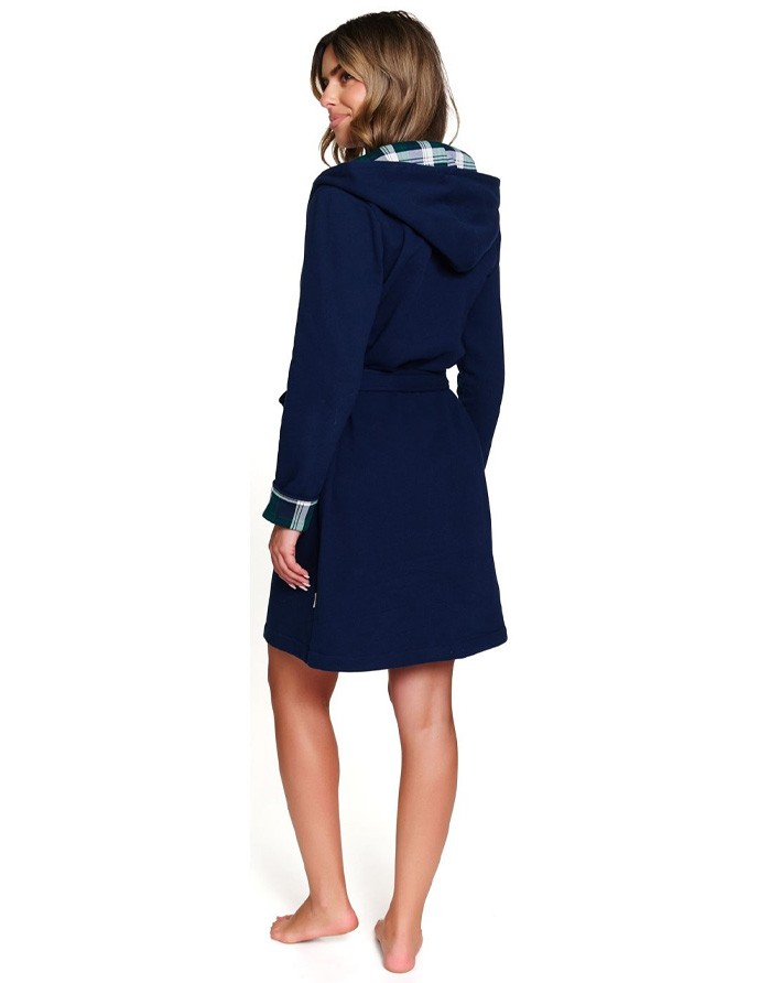 Women's bathrobe that combines classic style with exceptional comfort. Made of soft, natural cotton with a fluff inside. Decorated with contrasting checkered patterns at the hood and cuffs.