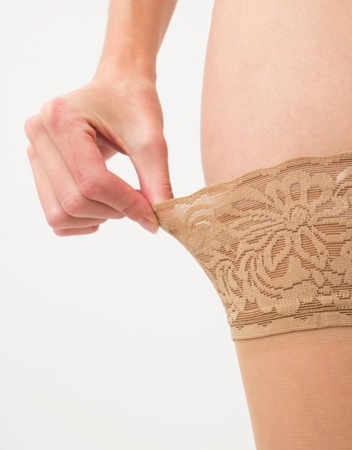 - Wide lace band at the thighs.