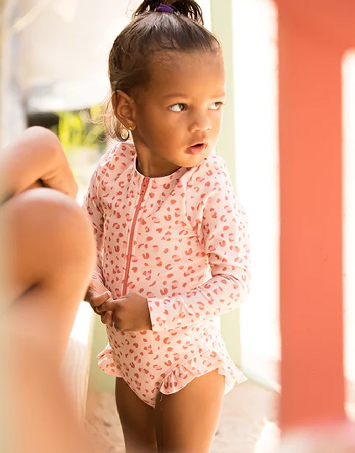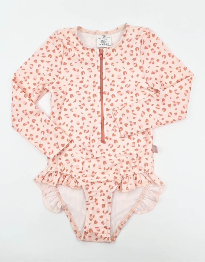Ühes tükis ujumistrikoo pikkade varrukatega ja eesmise lukuga.