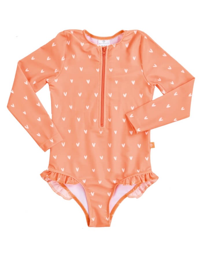 Ühes tükis ujumistrikoo pikkade varrukatega ja eesmise lukuga.