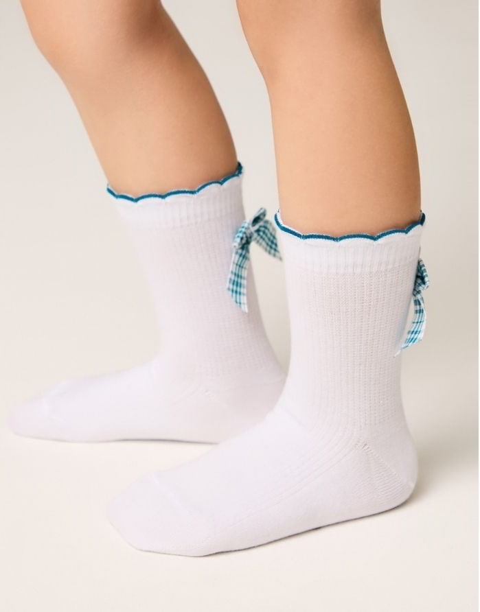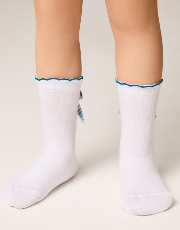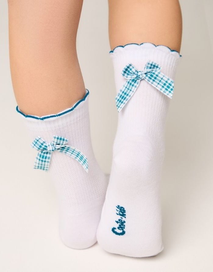Klasikinės, malonaus audinio vaikiškos kojinaitės su bantuku.
