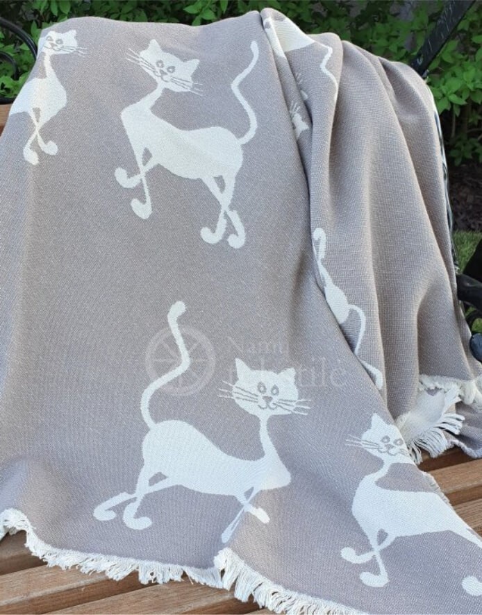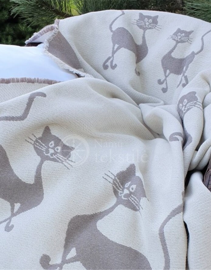 Žakaarkoelised vaibad on valmistatud 100% puuvillast lõbusa kassipoegade mustriga. Looduslikust kiust vaipa kasutatakse kuumadel suveöödel teki asemel, seda ei pea mähkima. Puuvill imab hästi niiskust, on kehale õrn ega tekita allergiat. See vaip on suurepärane valik piknikule või laisaks puhkamiseks rannas.
