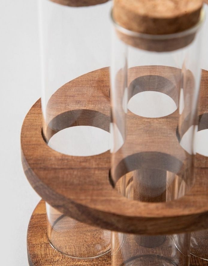 Elegantsed klaaspurgid naturaalsest korgist kaantega sobivad ideaalselt teie lemmikvürtside ja ürtide hoidmiseks. Komplekt on kompaktsel puidust alusel, mis mitte ainult ei lihtsusta selle korraldamist, vaid lisab ka stiilse aktsendi.
