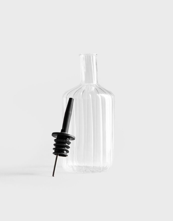 CADERE pudel näeb suurepärane välja igas moodsas köögis. Ümar kuju dekoratiivsete soonte ja musta valamistilaga annab sellele erilise välimuse, samas kui läbipaistev klaas toob kaunilt esile õli või palsamiäädika värvi.