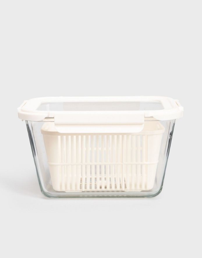 NEGOZIO korviga anum on mõeldud värskete köögiviljade, puuviljade, salati, mozzarella ja muude kurnamist vajavate toodete hoidmiseks. Eemaldatav sisetükk võimaldab mugavalt eraldada sisu liigsest vedelikust ja tihedalt sulguv kaas säilitab värskuse.