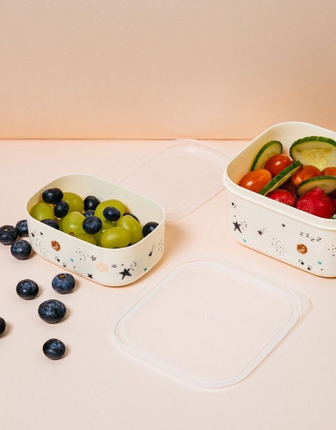 Mänguliselt kujundatud suupistekarpide komplekt võimaldab teil hõlpsalt ja mugavalt pakkida tervislikke suupisteid tööle, kooli või reisile.