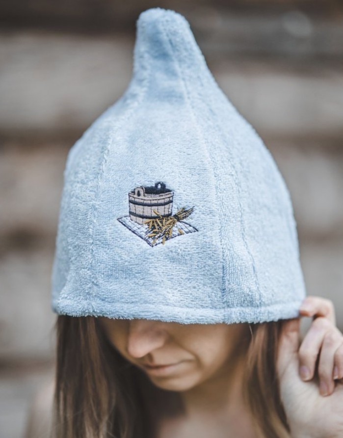 Leedu tootjate saunamüts, mis on valmistatud 100% pehmest kammitud puuvillast, kaitseb pead saunas kuuma eest.