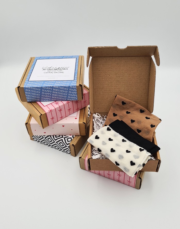 Практичный подарок для НЕЁ — классические тонкие носки, упакованные в картонную коробку.