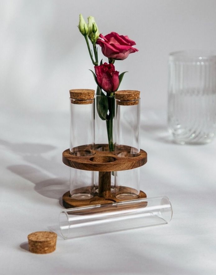 Элегантные стеклянные банки с крышками из натуральной пробки идеально подойдут для хранения любимых специй и трав. Набор расположен на компактной деревянной подставке, которая не только облегчает организацию, но и добавляет стильный акцент.