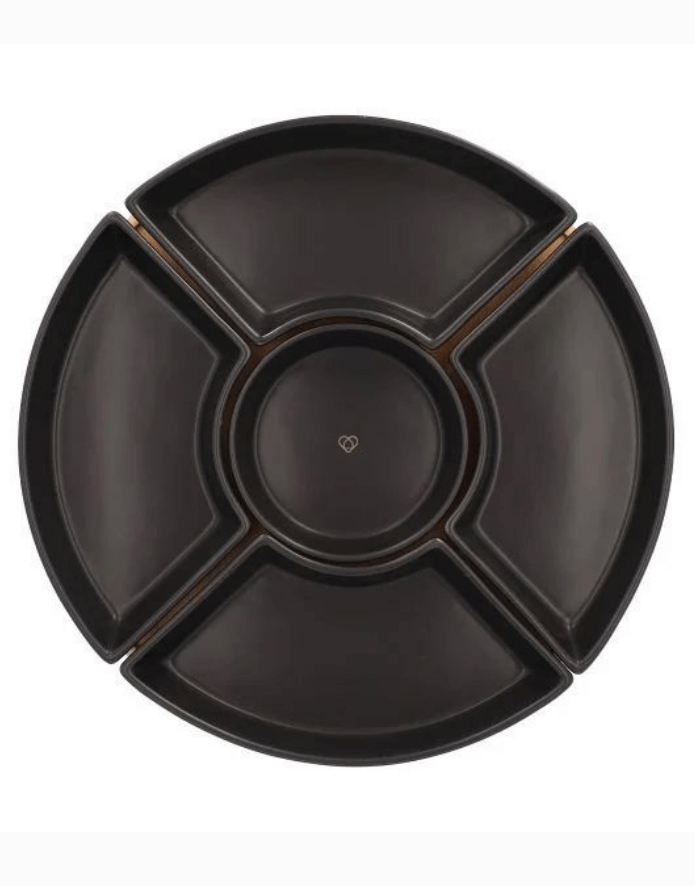 Тарелка FINCAN состоит из пяти круглых частей, каждая из которых представляет собой отдельную чашу для закусок или соусов. Бамбуковое основание можно вращать, что облегчает совместное использование закусок за столом.