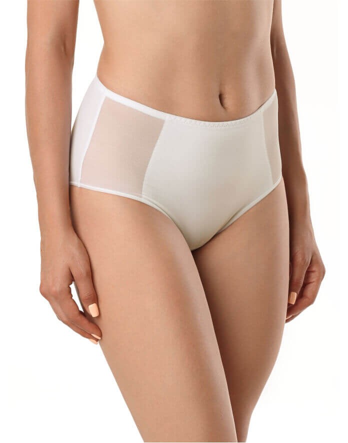 Классические трусики с высокой талией для женщин от бренда "Conte". Боковые части украшены непрозрачной ажурной тканью. Хлопковая вставка.