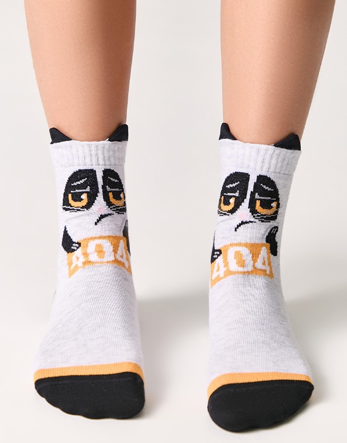 Серые носки бренда Conte с милым рисунком. Удобная хлопковая ткань и эластичная не сжимающая резинка позволяют ребенку чувствовать себя комфортно весь день.