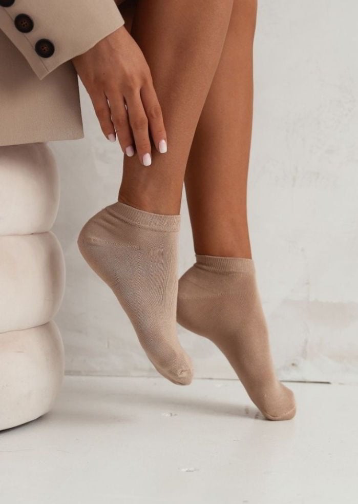 Короткие хлопковые носки, хорошо сидят на ноге, не скользят и поэтому очень удобны.