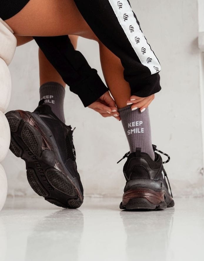 - Длинные носки с надписью на задней части.