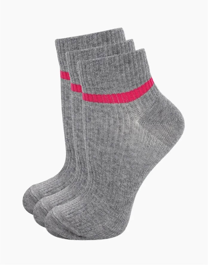 Короткие серые спортивные носки бренда Conte для женщин. Украшены яркой полоской. Очень хорошо облегают ногу и не спадают.