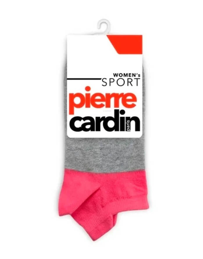 Короткие хлопковые спортивные носки для женщин бренда "Pierre Cardin" в серо-розовом цветовом сочетании.
