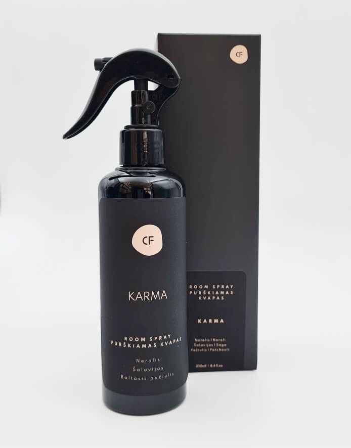 Домашний спрей-аромат KARMA изготавливается путем смешивания ароматических масел.