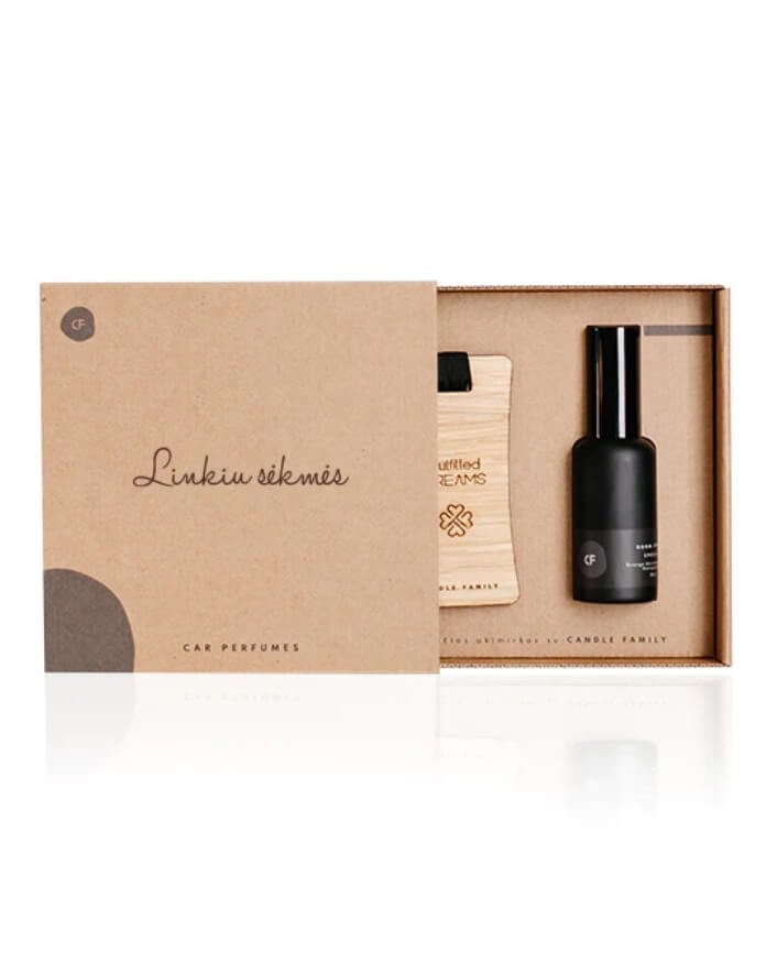 В комплекте вы найдете аромакарту и спрей с таким же ароматом, которым можно вдыхать аромакарту, или использовать как освежитель в салоне автомобиля или в помещении.
