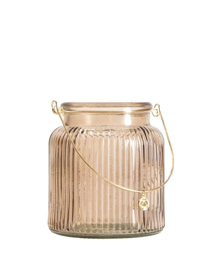 Этот стеклянный подсвечник — прекрасное украшение, которое добавит уюта в любую комнату. Подсвечник имеет изящную золотую ручку, украшенную небольшой декоративной подвеской.