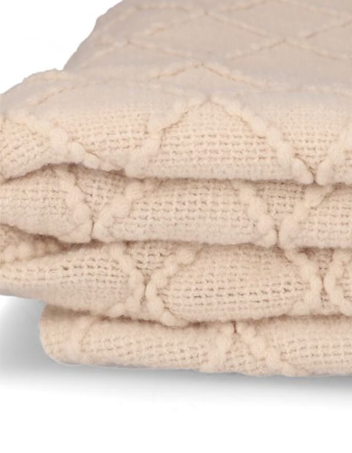 Бежевое одеяло LOOP из шаровидной ткани — это легкое и повседневное изделие в стиле бохо, которое подойдет не только для интерьеров, поддерживающих эту эстетику. Благодаря своему универсальному бежевому цвету и приятной текстуре он также привнесет уют в скандинавский и современный интерьер.